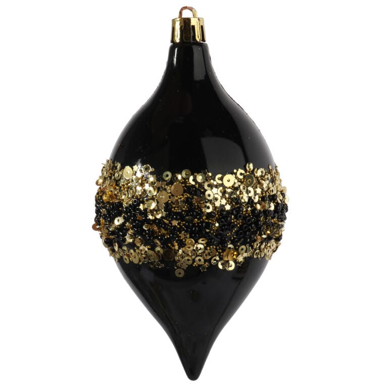 Strona główna » Produkty » Elegancki Komplet 2 Bombek Wrzecionowych w Kolorze Czarno-Złotym, Dekorowanych Cekinami