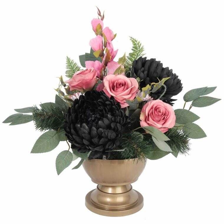 Elegancki Stroik Nagrobny z czarną chryzantemą gazon