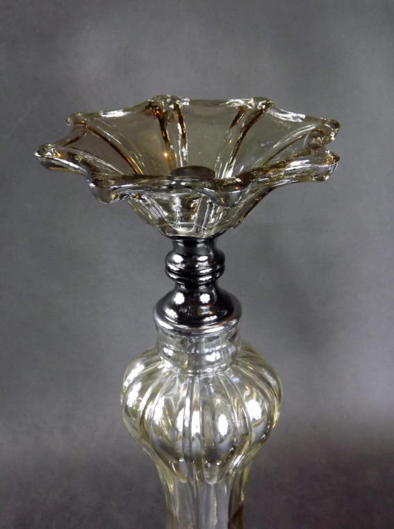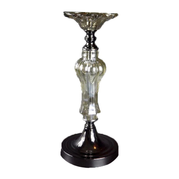 Elegancki Świecznik Stojący z Brązowego Metalu i Szkła 14×34 cm z Antypoślizgowym Spodem