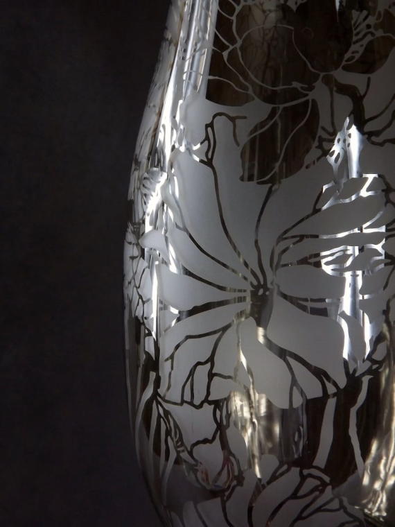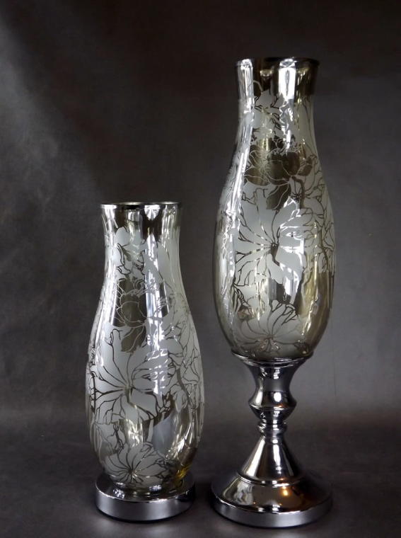 Elegancki Wazon Szklany z Chromem i Kwiatowym Dekorem 15×38 cm – Niższy z Kolekcji