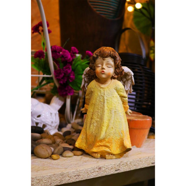 Ten uroczy anioł w kremowej szacie, symbolizujący czystość i niewinność, to idealny dodatek do Twojego wnętrza lub wyjątkowy prezent dla bliskiej osoby. Wykonany z wysokiej jakości polirezynu, zapewnia odporność na warunki atmosferyczne, dzięki czemu może zdobić zarówno wnętrza, jak i ogrody. Jego elegancka postać całującego anioła ma wysokość 21 cm, co sprawia, że doskonale wpisuje się w różnorodne aranżacje, od klasycznych po nowoczesne.