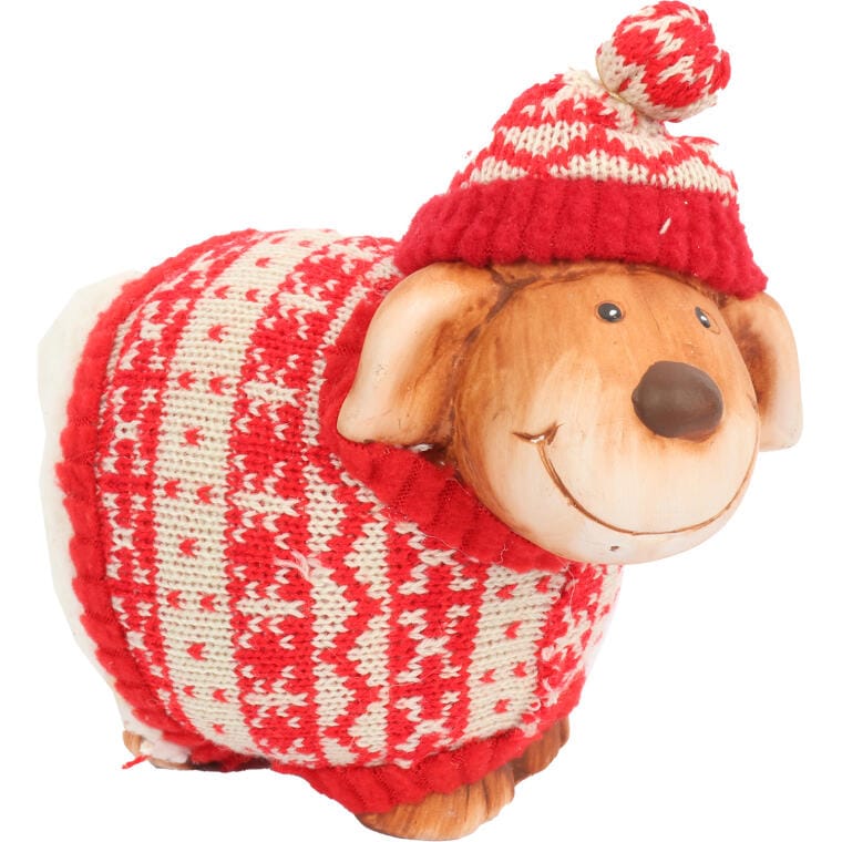 Figurka Ceramiczna Owieczka w Skandynawskim Sweterku 15 cm – Dekoracja Bożonarodzeniowa