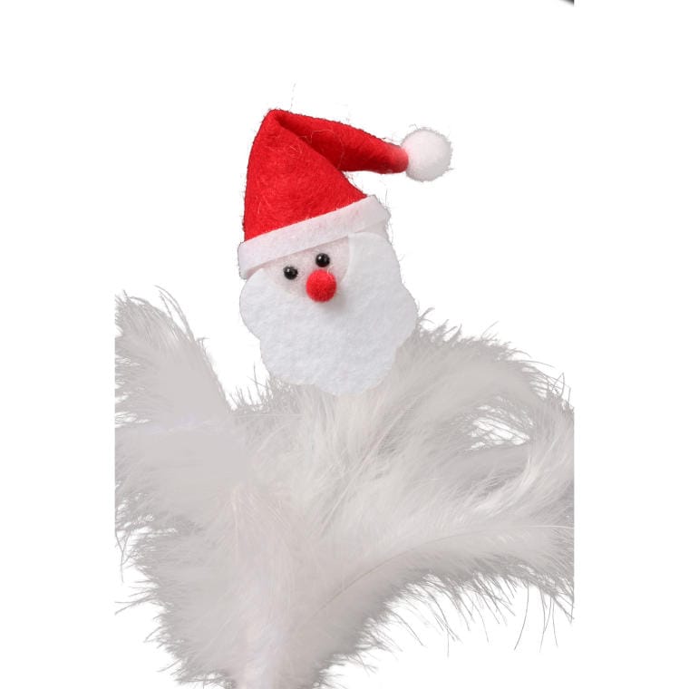 Figurka Głowa Mikołaja z piórkami w kolorze białym