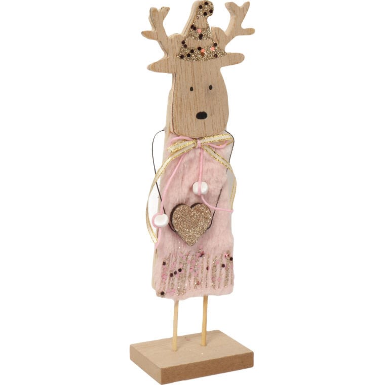 Figurka-Renifer z Drewna z Różowym Futerkiem, Brokatem i Cekinami 22x6x4,5 cm