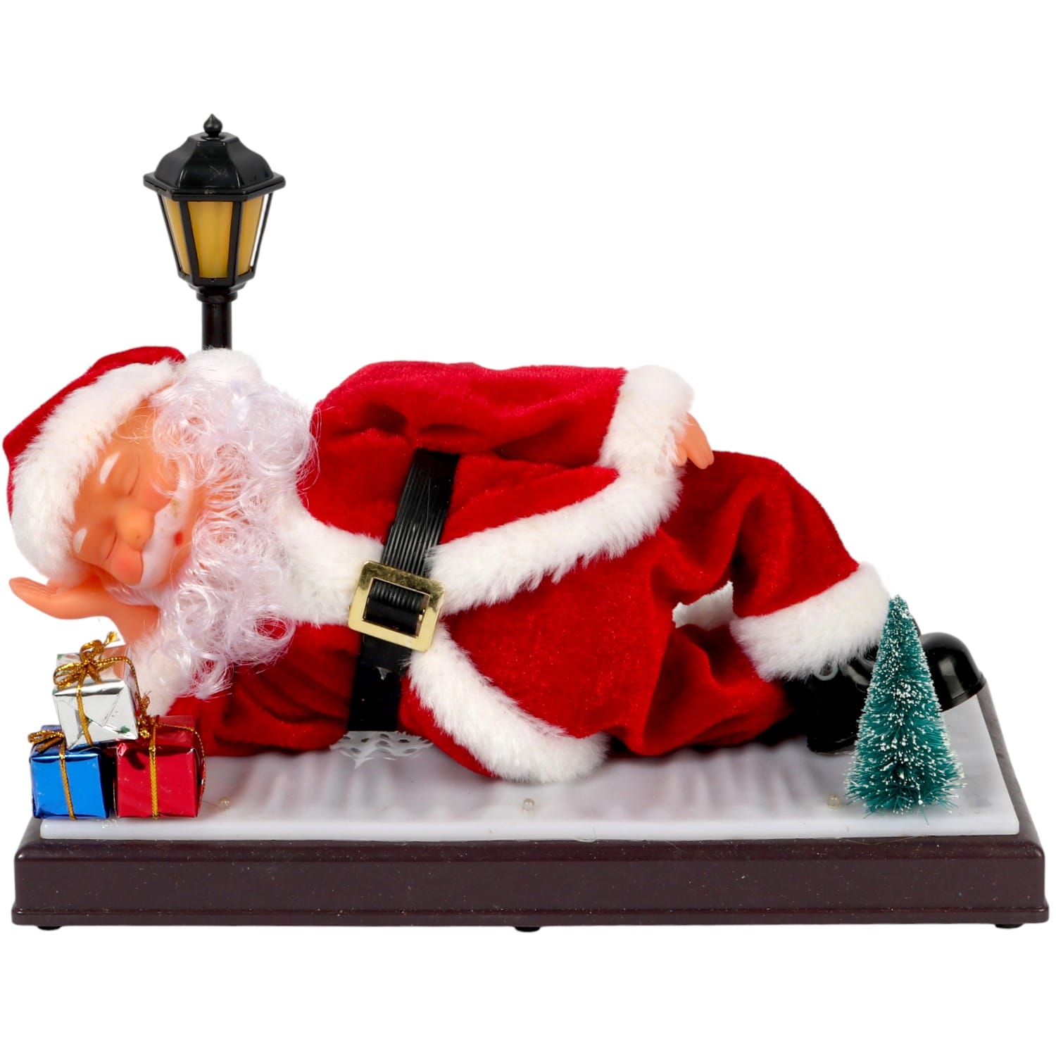 - Śpiący Święty Mikołaj: Ta animowana dekoracja świąteczna przedstawia CHRAPIĄCEGO Świętego Mikołaja, który porusza reką i nogą w jego klasycznym, czerwonym ubraniu