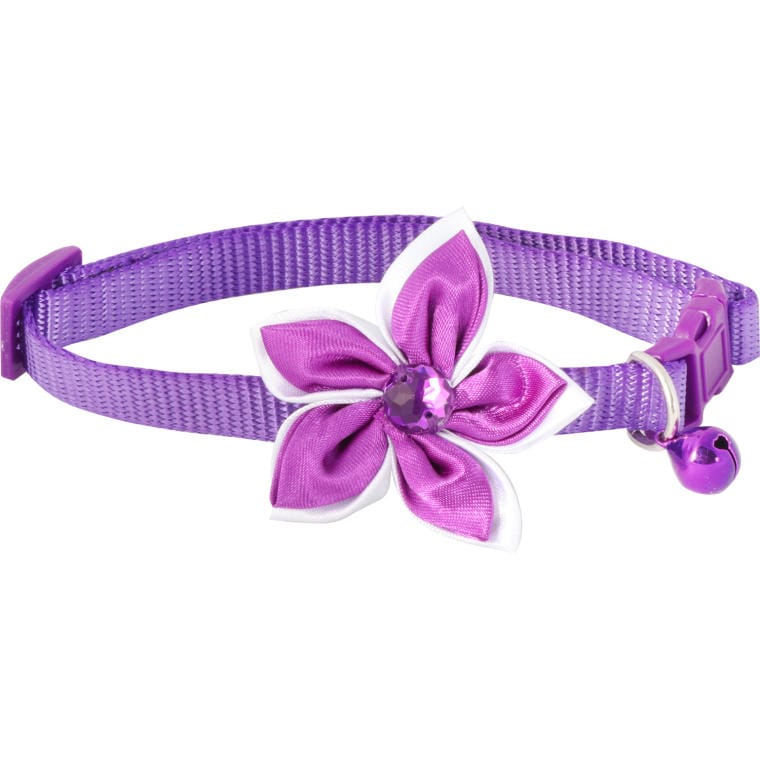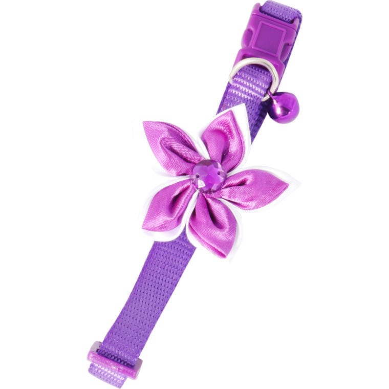 Fioletowa Obroża dla Zwierząt z Ozdobnym Kwiatkiem i Praktycznym Dzwoneczkiem