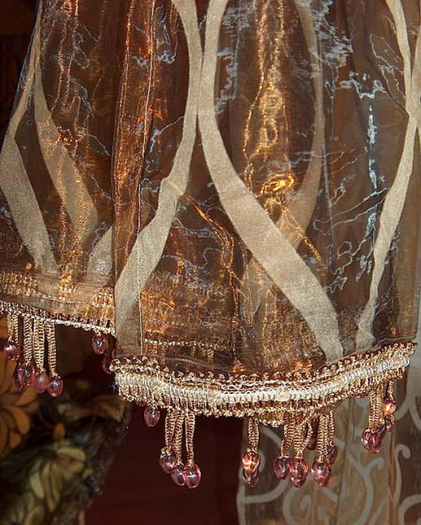 Ta delikatna, brązowa firana z beżowym, aksamitnym nadrukiem to doskonały wybór dla tych, którzy pragną dodać swoim wnętrzom elegancji i przytulności. Wykończenie dolnej krawędzi w postaci taśmy z koralikami nie tylko wzbogaca jej estetykę, ale także zapewnia odpowiednie obciążenie, dzięki czemu firana ładnie i harmonijnie układa się na oknie. Dzięki tunelowi na drążek, zawieszenie firany jest proste i wygodne, a możliwość montażu na żabki sprawia, że jej zastosowanie jest bardzo uniwersalne. O wymiarach 250 cm wysokości i 140 cm szerokości, firana idealnie pasuje do różnych typów okien, wprowadzając do przestrzeni ciepłą i przyjemną atmosferę. Ta wyjątkowa firana z pewnością stanie się atrakcyjnym elementem dekoracyjnym, dodając charakteru każdemu pomieszczeniu w Twoim domu.