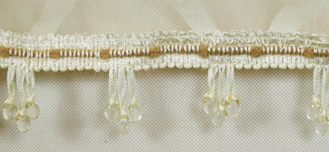 Firana Welurowa z Koralikowym Akcentem w Kolorze Jasnego Kremu