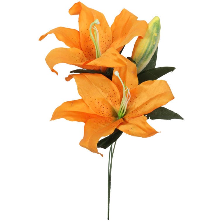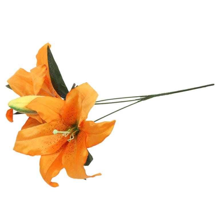 Gałązka podwójnej lilii z pąkiem doskonale sprawdzi się jako samodzielny akcent w wazonie lub jako część większych kompozycji kwiatowych, dodając im świeżości i elegancji. Pomarańczowy kolor, kojarzący się z ciepłem i optymizmem, świetnie komponuje się z innymi kwiatami oraz stylami aranżacyjnymi — od klasycznych po nowoczesne.