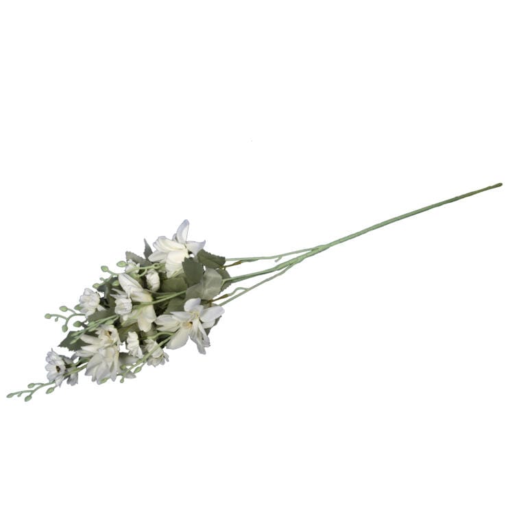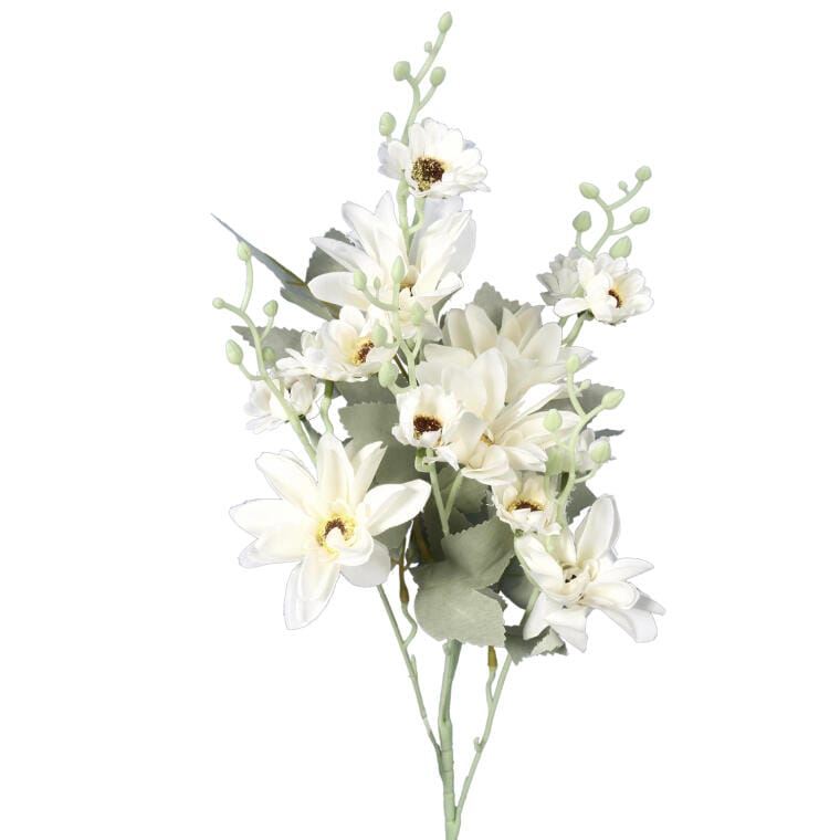 Sztuczny kwiat w postaci dużej gałązki z pięcioma dalii i wieloma pąkami to idealny sposób na wprowadzenie elegancji i świeżości do Twojego wnętrza. Wykonany z materiałów najwyższej jakości, ten realistyczny kwiat do złudzenia przypomina żywą roślinę, co czyni go wyjątkową dekoracją. Może być stosowany zarówno jako samodzielny element ozdobny, jak i w różnorodnych kompozycjach, doskonale wzbogacając Twoje otoczenie. Biały kolor dalii emanuje subtelnością i czystością, idealnie wpisując się w różnorodne style aranżacji. O długości 86 cm, ten efektowny dodatek stanie się centralnym punktem w każdej przestrzeni, nadając jej niepowtarzalnego charakteru i elegancji.