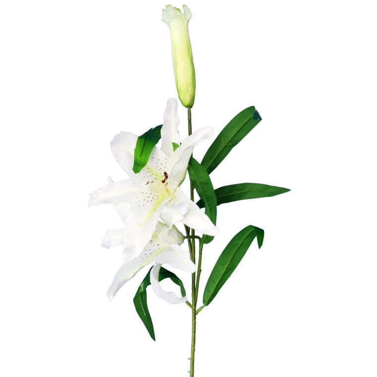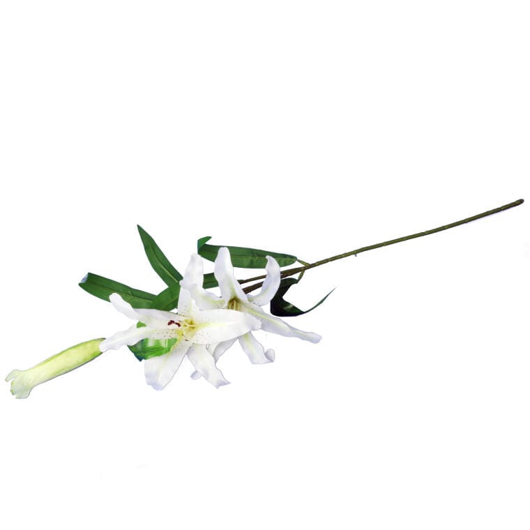 Gałązka białej lilii z dwoma kwiatami i pąkiem – 74 cm