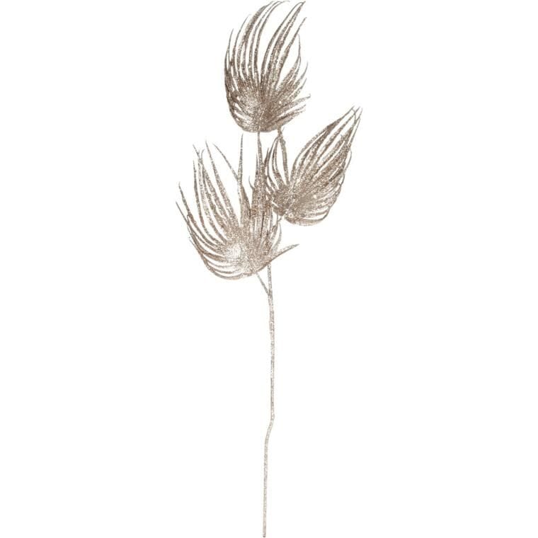GAŁĄZKA BROKATOWA – 3 LIŚCIE PALMY 66 CM SZAMPAN