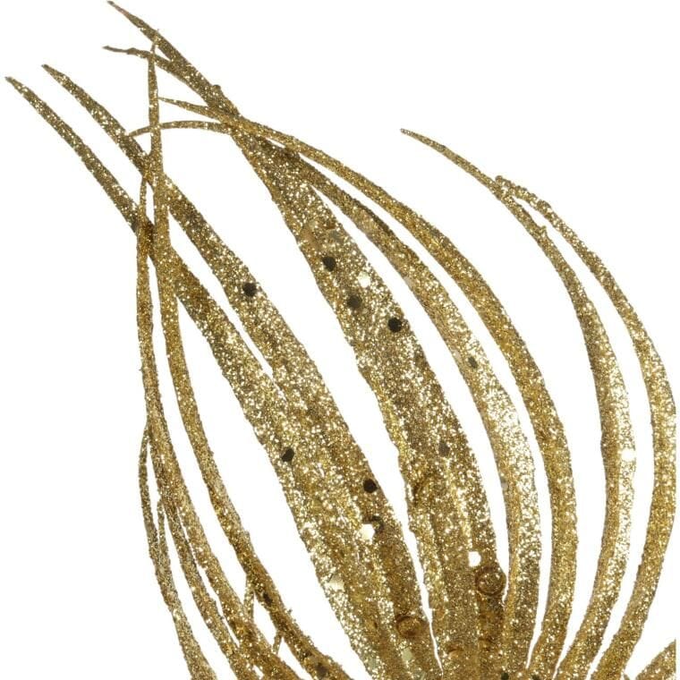 GAŁĄZKA BROKATOWA – 3 LIŚCIE PALMY 66 CM ZŁOTA
