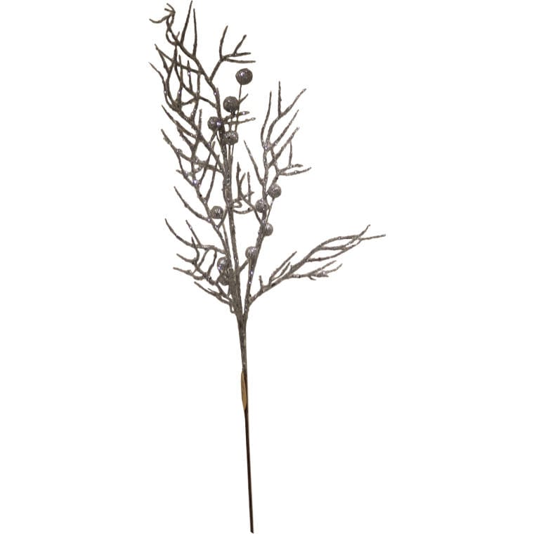 Gałązka brokatowa z kulkami, srebrna, EY-17A-3444