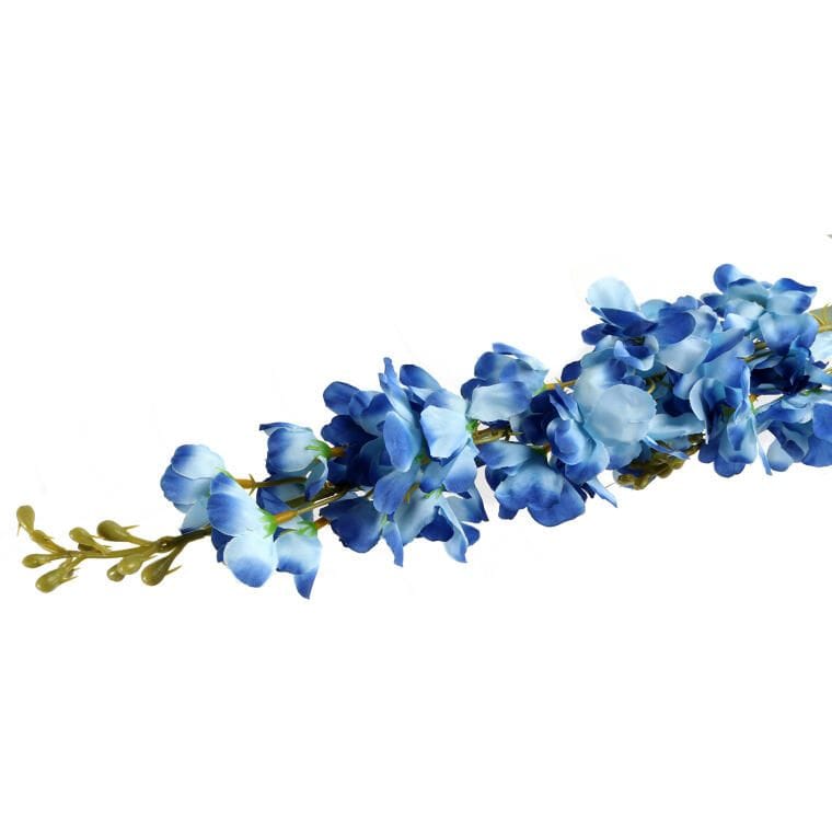 Gałązka dekoracyjna z dwoma niebieskimi kwiatami ostróżki o wysokości 87 cm