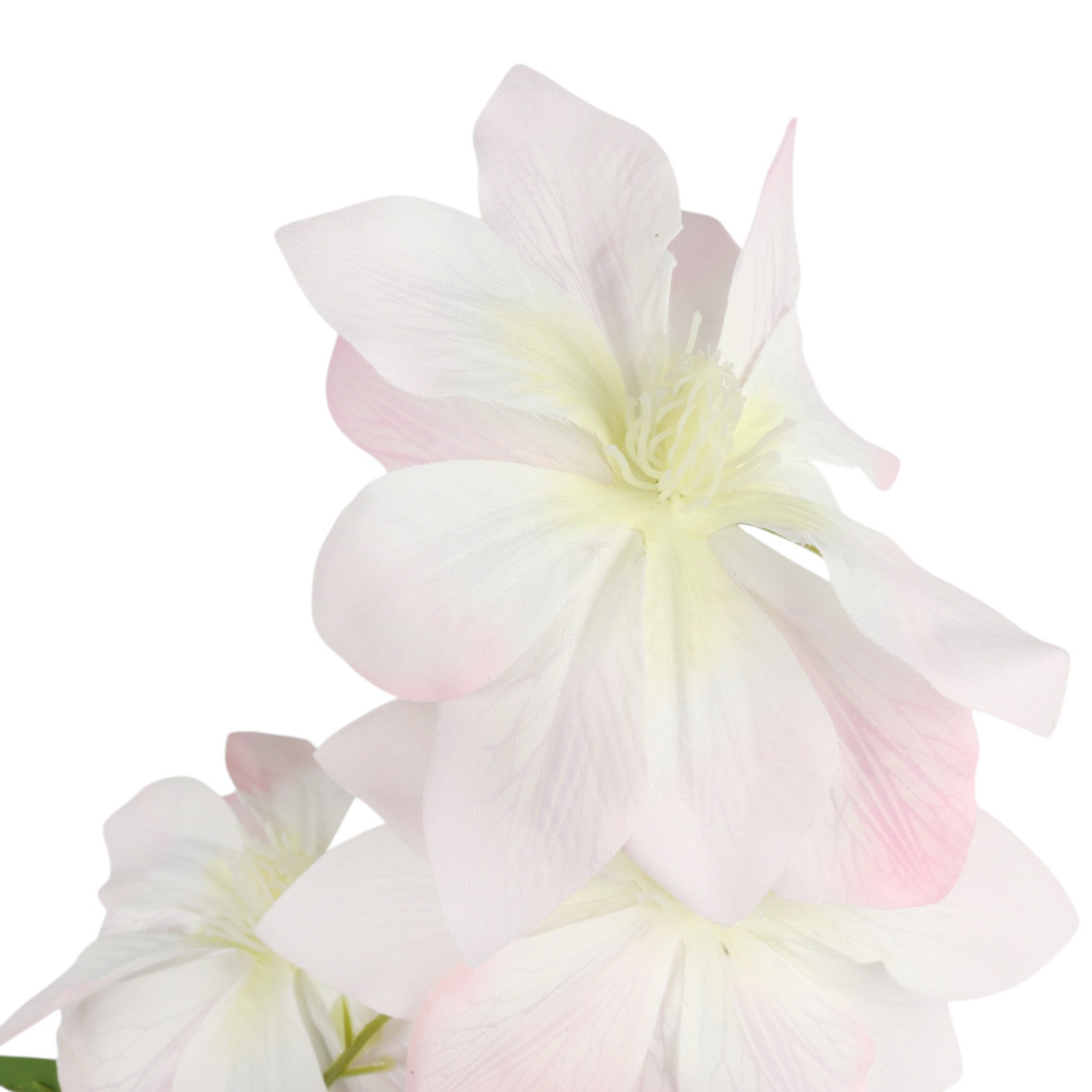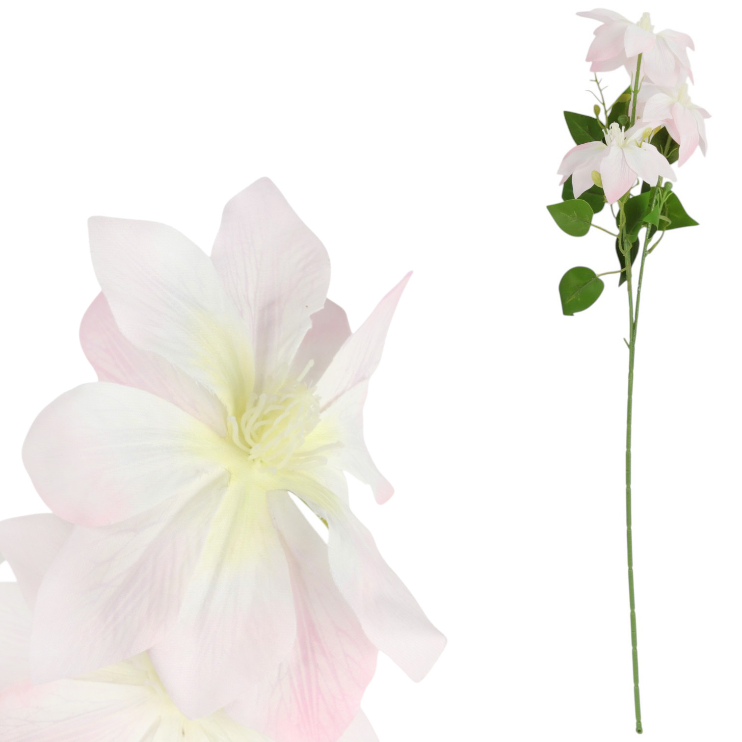 Sztuczna gałązka pięknego powojnika, to elegancka dekoracja wykonana z wysokiej jakości materiału, który sprawia, że kwiaty do złudzenia przypominają żywe. Idealna jako samodzielna ozdoba lub element kompozycji kwiatowych, wprowadza do wnętrza subtelny kolor i wyjątkowy urok. Trwała, estetyczna i efektowna, doskonale udekoruje salon, sypialnię, biuro lub restaurację. Wysokość: 67cm, fi 13 cm