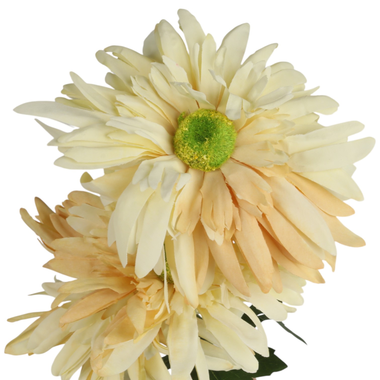 Sztuczna gałązka pięknej gerbery to elegancka dekoracja wykonana z wysokiej jakości materiału, który sprawia, że kwiaty do złudzenia przypominają żywe. Idealna jako samodzielna ozdoba lub element kompozycji kwiatowych, wprowadza do wnętrza subtelny kolor i wyjątkowy urok. Trwała, estetyczna i efektowna, doskonale udekoruje salon, sypialnię, biuro lub restaurację. Wysokość: 70cm, fi 14 cm