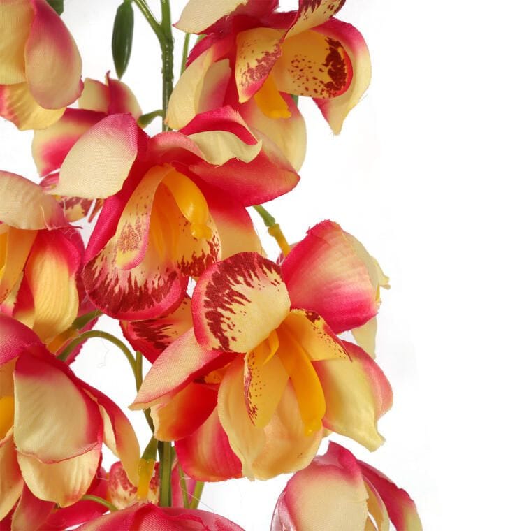 Sztuczny storczyk to elegancka dekoracja, która zachwyca realistycznym wyglądem i subtelnym wdziękiem. Wykonany z wysokiej jakości materiałów, wiernie odwzorowuje delikatność i piękno naturalnych orchidei, wprowadzając do wnętrza nutę egzotycznej elegancji. Doskonale sprawdzi się zarówno jako samodzielna ozdoba w wazonie, jak i element większej kompozycji florystycznej, nadając przestrzeni stylowy charakter.