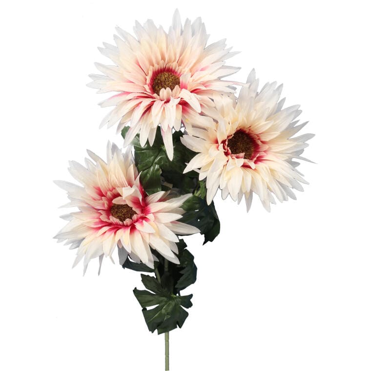 Gałązka z 3 kremowymi Gerberami – Kwiat sztuczny wysokiej jakości, 80 cm