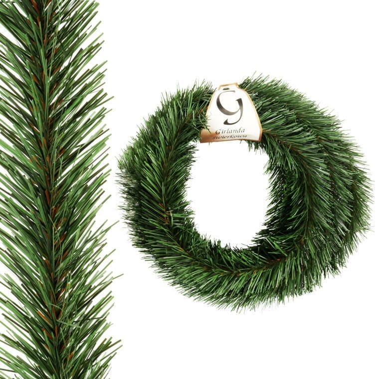 Świąteczny łańcuch imitujący igły sosnowe o szerokości 7,5 cm to doskonała ozdoba wnętrz na czas Bożego Narodzenia. Dzięki elastycznemu, miękkiemu drutowi, girlandę można dowolnie formować, co czyni ją wszechstronną dekoracją. Idealnie nadaje się do ozdabiania poręczy schodów, balkonów czy kominków, dodając im naturalnego, świątecznego charakteru. Produkt świetnie sprawdza się także jako baza do tworzenia wieńców, stroików oraz innych dekoracji świątecznych. Łańcuch wniesie ciepłą i przytulną atmosferę, idealnie podkreślając świąteczny klimat w każdym domu. Niezbędny element bożonarodzeniowych aranżacji, który zachwyci każdego!