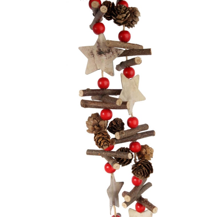 GIRLANDA DREWNIANA OZDOBA ŚWIĄTECZNA BOŻONARODZENIOWA Z GWIAZDAMI