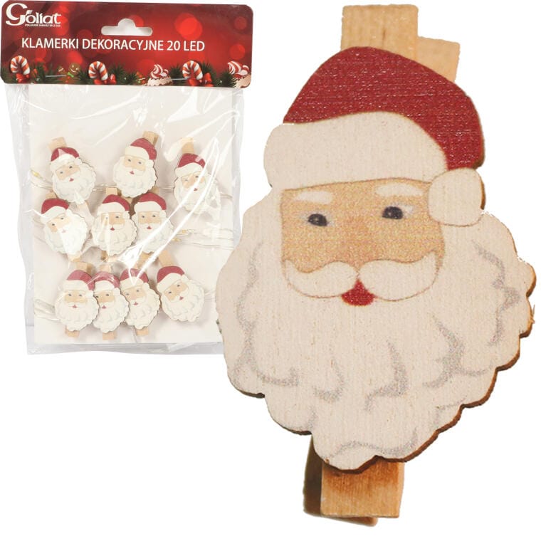 Girlanda Świąteczna z Klamerkami w Kształcie Mikołajów na Baterie z 20 LED