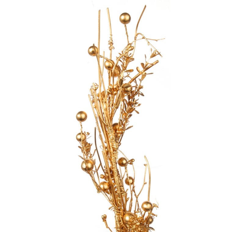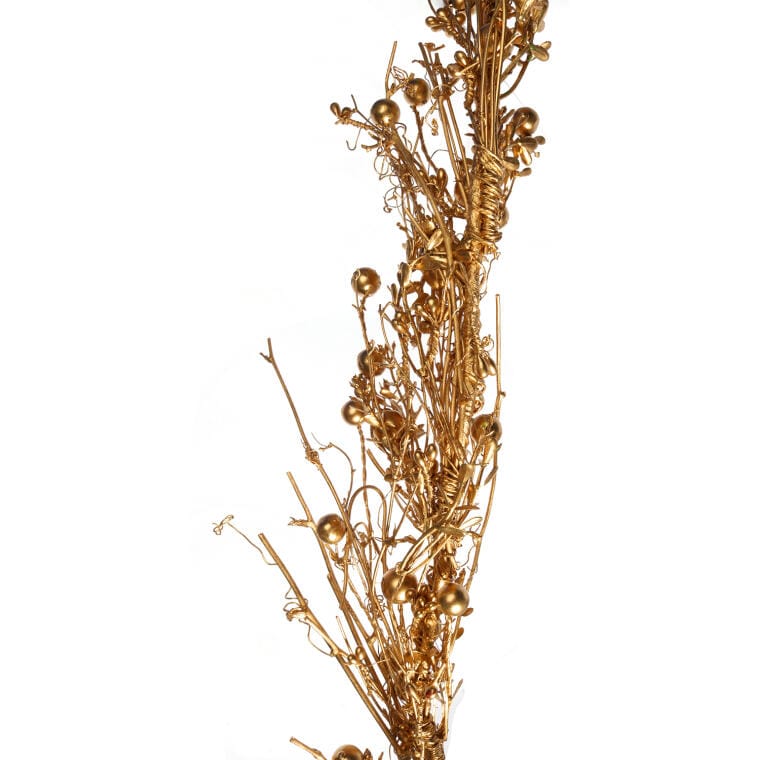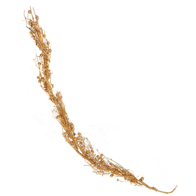 Girlanda ze złotych gałęzi z drewnianą dekoracją