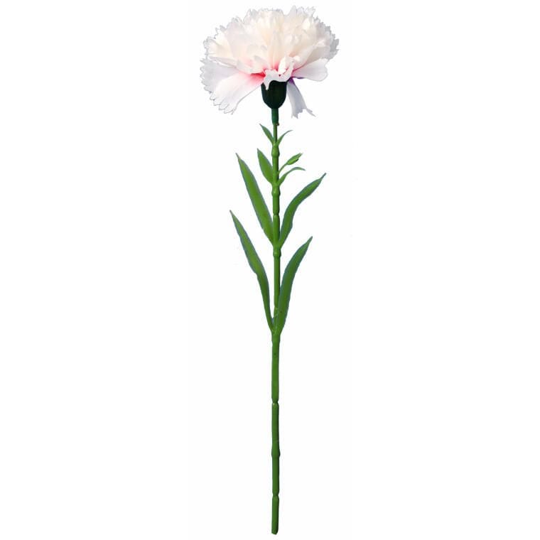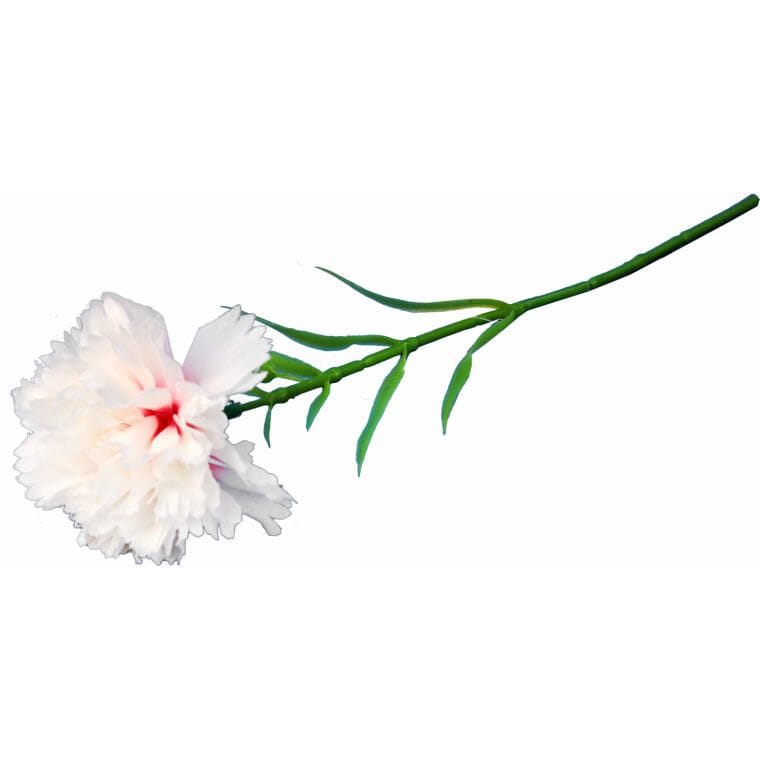 Sztuczny goździk, wykonany z materiałów najwyższej jakości, zachwyca swoim niezwykle realistycznym wyglądem, który imituje naturalne kwiaty. Dzięki starannie dobranym materiałom, ten goździk wygląda jak żywy i dodaje elegancji każdemu wnętrzu. Idealny zarówno jako samodzielna dekoracja, jak i część większej kompozycji, doskonale udekoruje Twoje otoczenie przez cały rok. Oferowana gałązka ma długość 30 cm i kwiat o średnicy 7,5 cm, co sprawia, że jest uniwersalnym wyborem do różnych aranżacji.