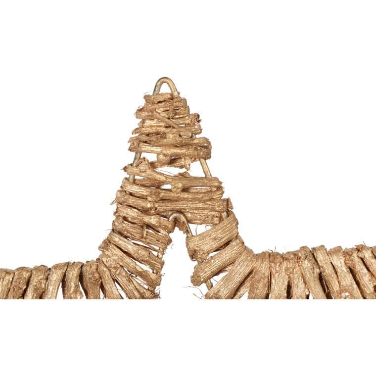 Zawieszka złota gwiazda o wymiarze 20 cm to elegancka i uniwersalna ozdoba świąteczna, która doskonale komponuje się z innymi dekoracjami na choince, dodając jej wyjątkowego blasku i uroku. Dzięki swojej wszechstronności świetnie sprawdzi się także jako dekoracja okien, drzwi czy ścian, wzbogacając wnętrze o świąteczny klimat. Wykonana z wysokiej jakości drewna, dwustronna gwiazdka prezentuje się pięknie z każdej strony, co czyni ją idealnym elementem do zawieszenia w dowolnym miejscu. Zawieszka jest subtelna, a jednocześnie przyciąga uwagę, wprowadzając ciepło i magię świąt do każdego pomieszczenia.
