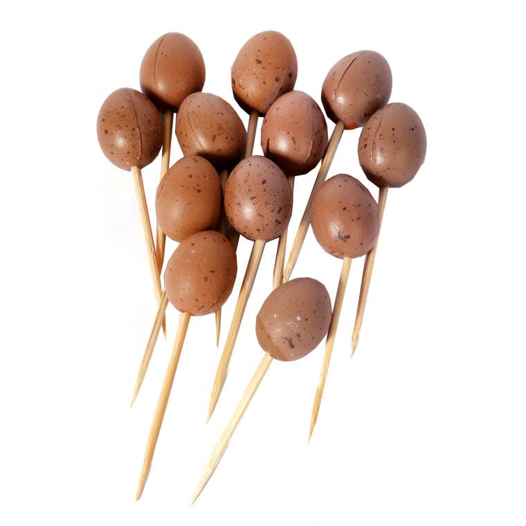 Jajka plastikowe na piku zestaw 12 sztuk 2,5cm brązowe