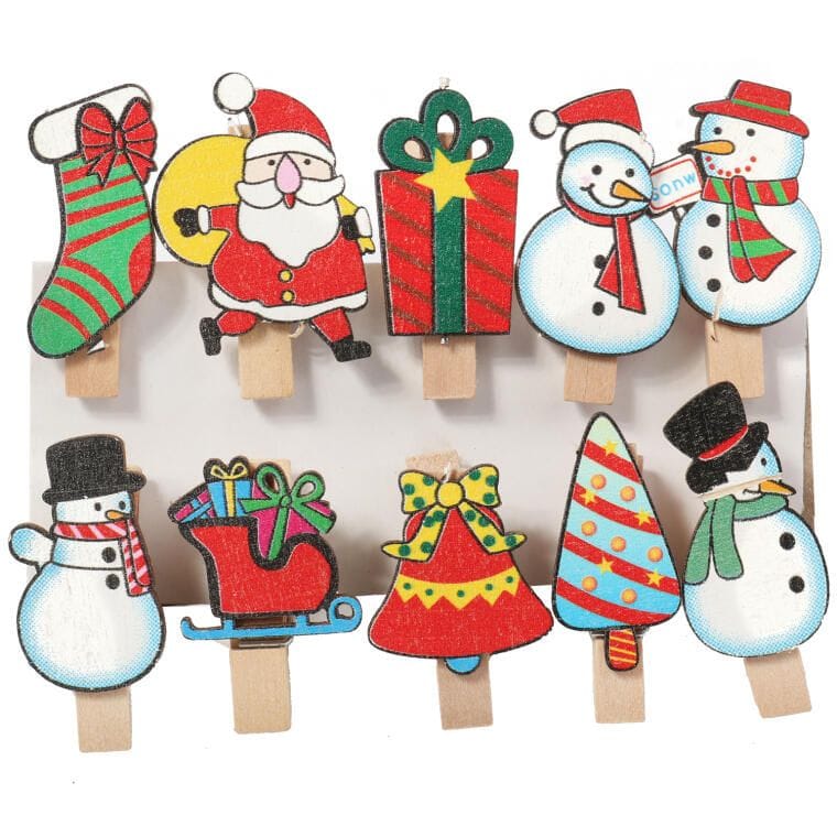 Klamerki Drewniane Multikolor do Dekoracji Bożonarodzeniowych 10 szt. 4 cm
