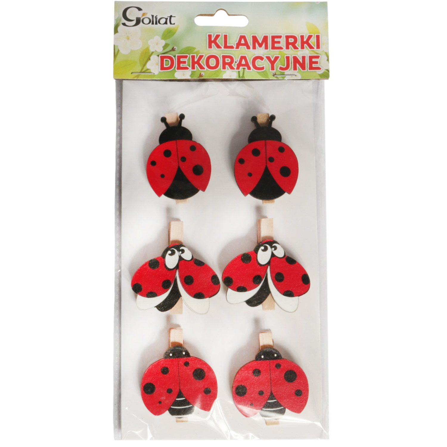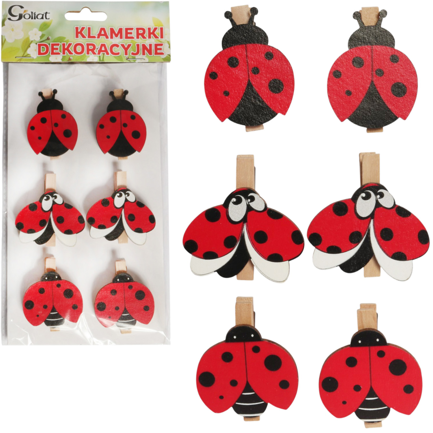 Klamerki drewniane z biedronkami – 6 sztuk
