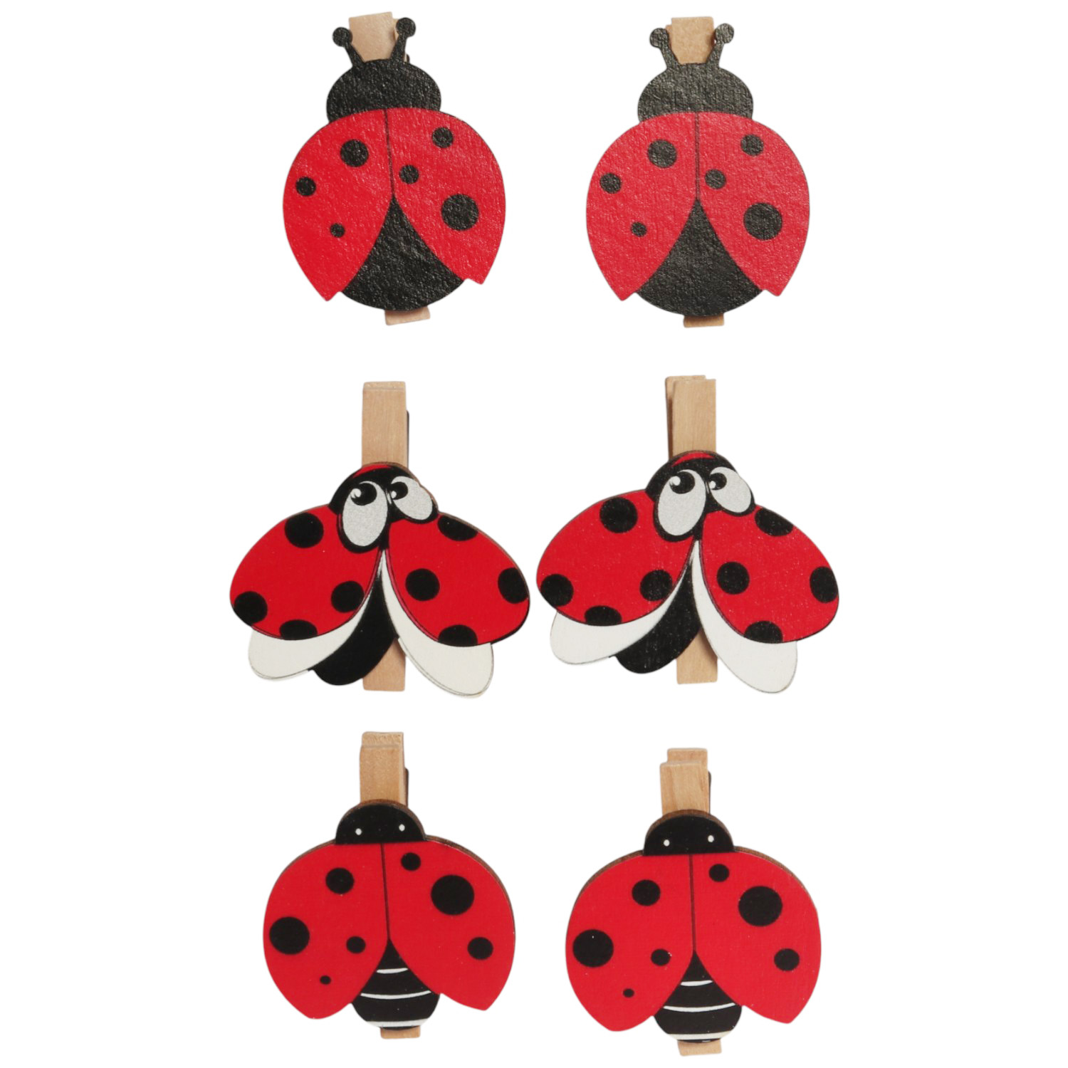 Klamerki drewniane spinacze mini z biedronką 6 szt.