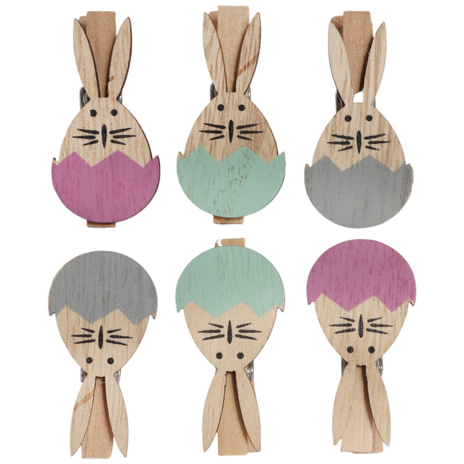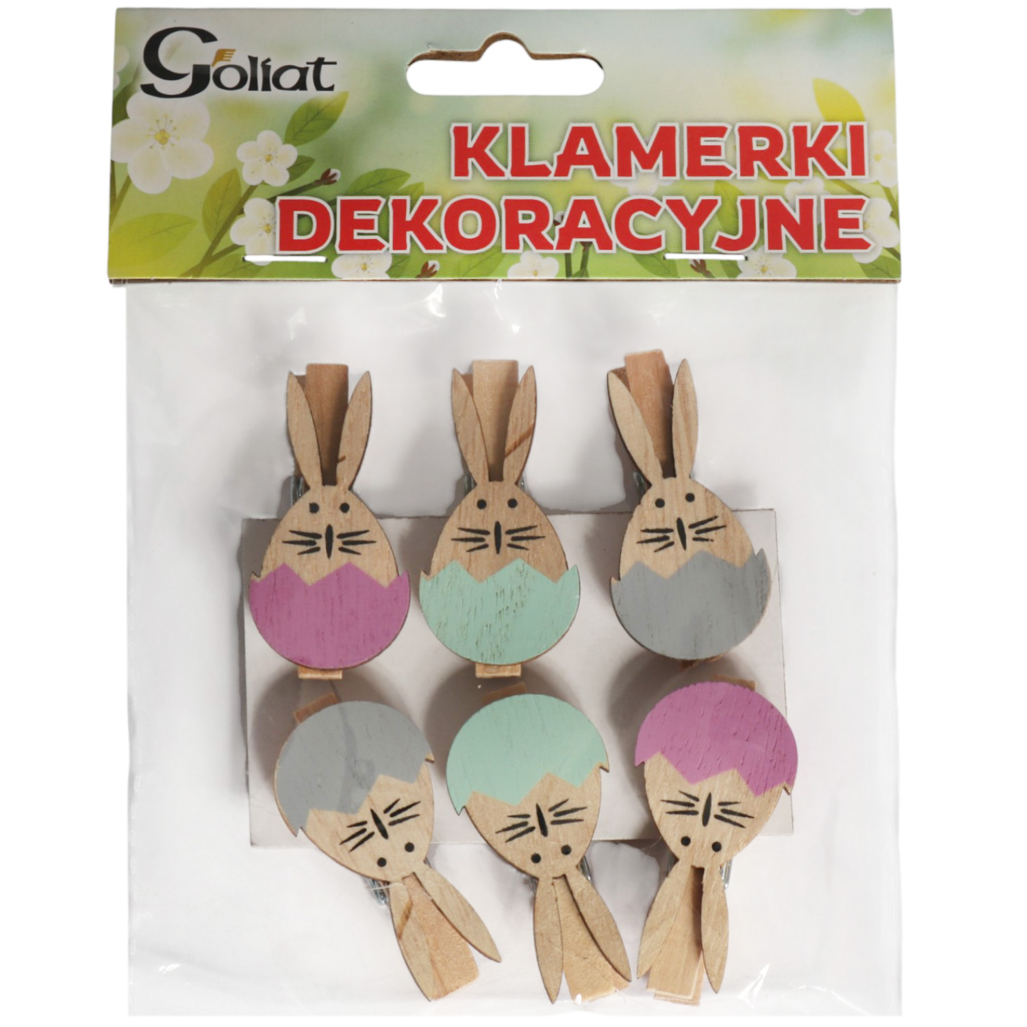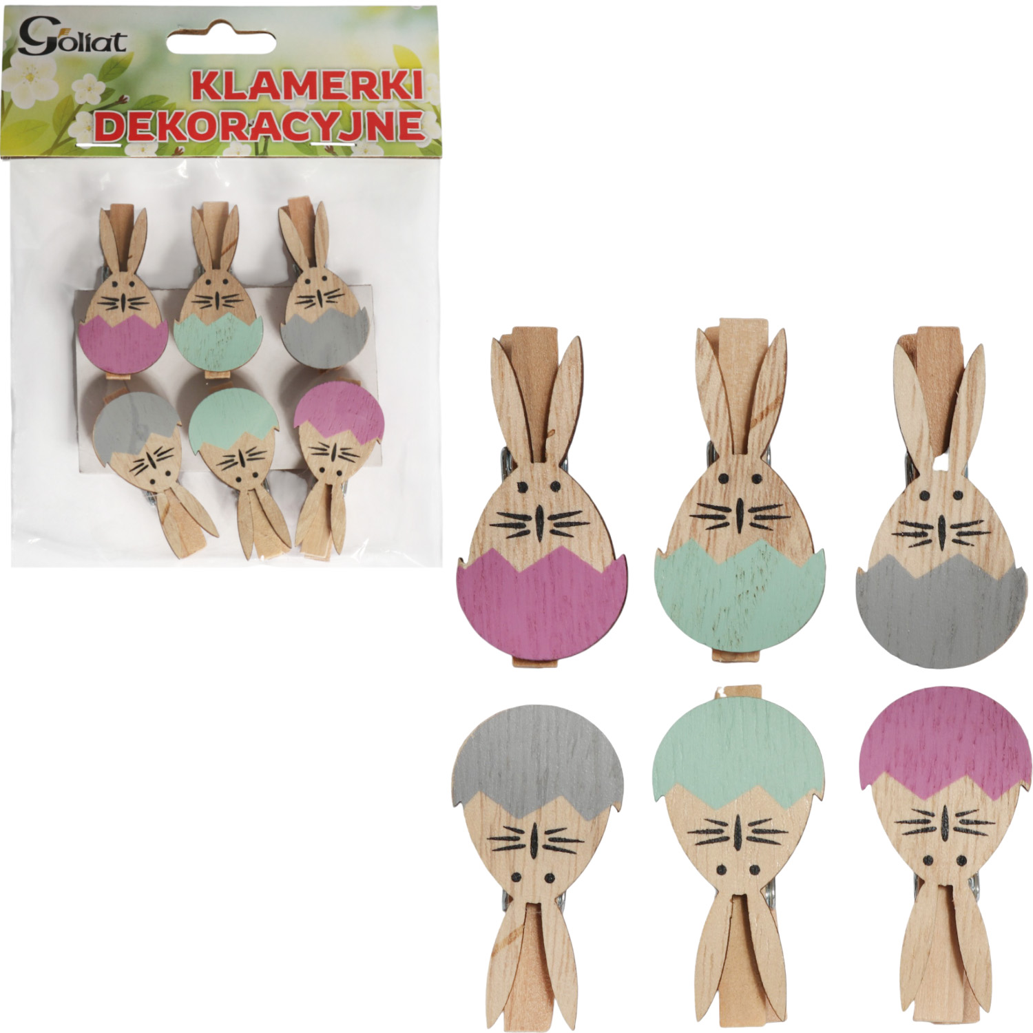 Klamerki drewniane z zajączkami w skorupkach – 6 sztuk