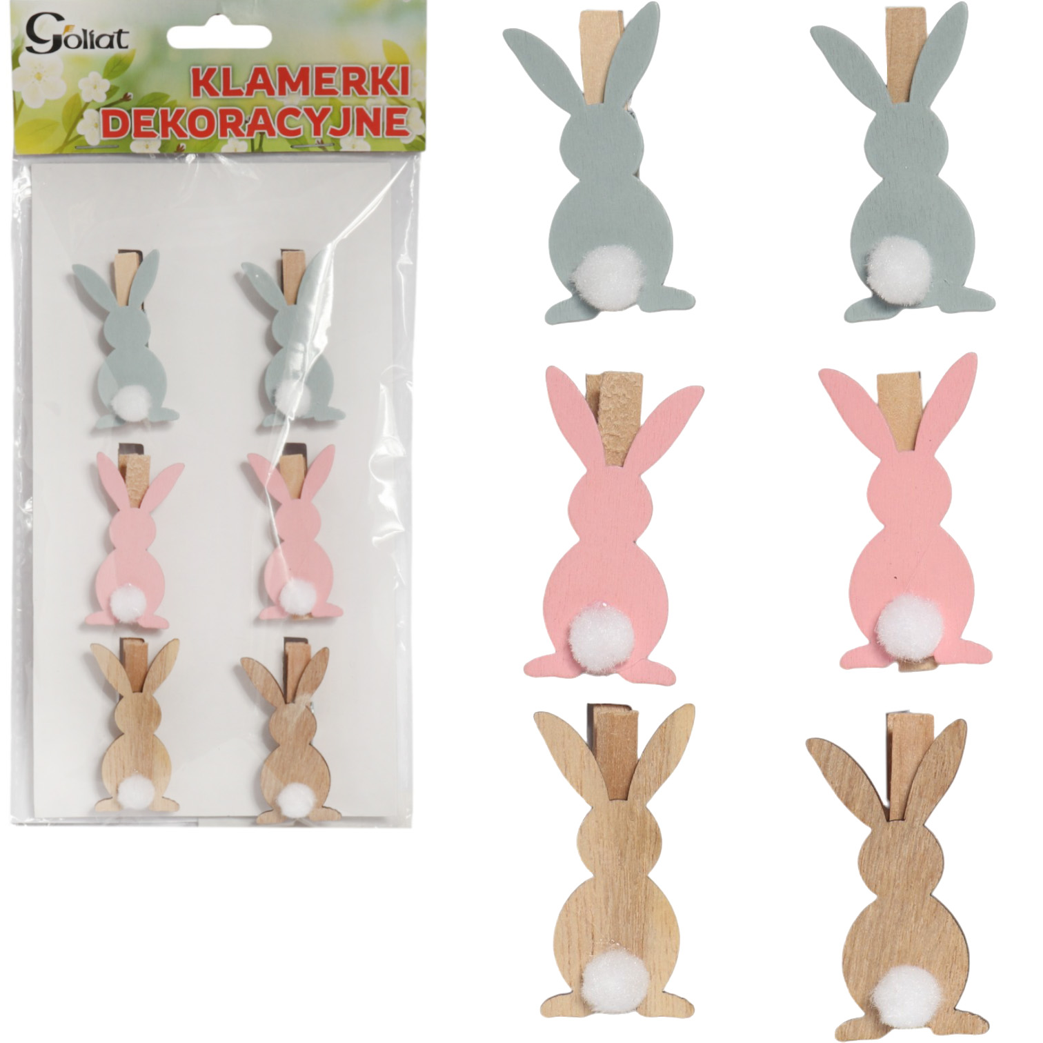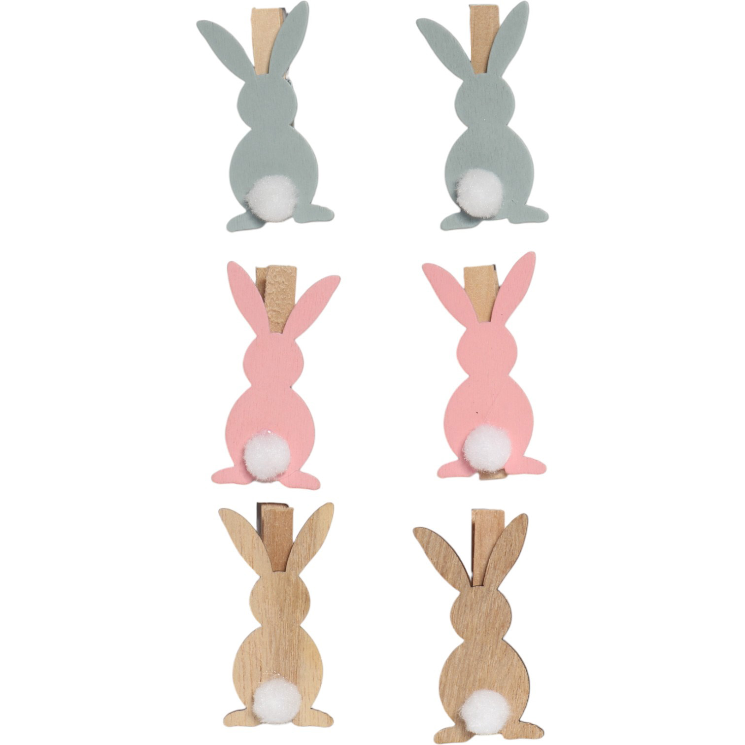 Klamerki drewniane z zajączkami – 6 sztuk