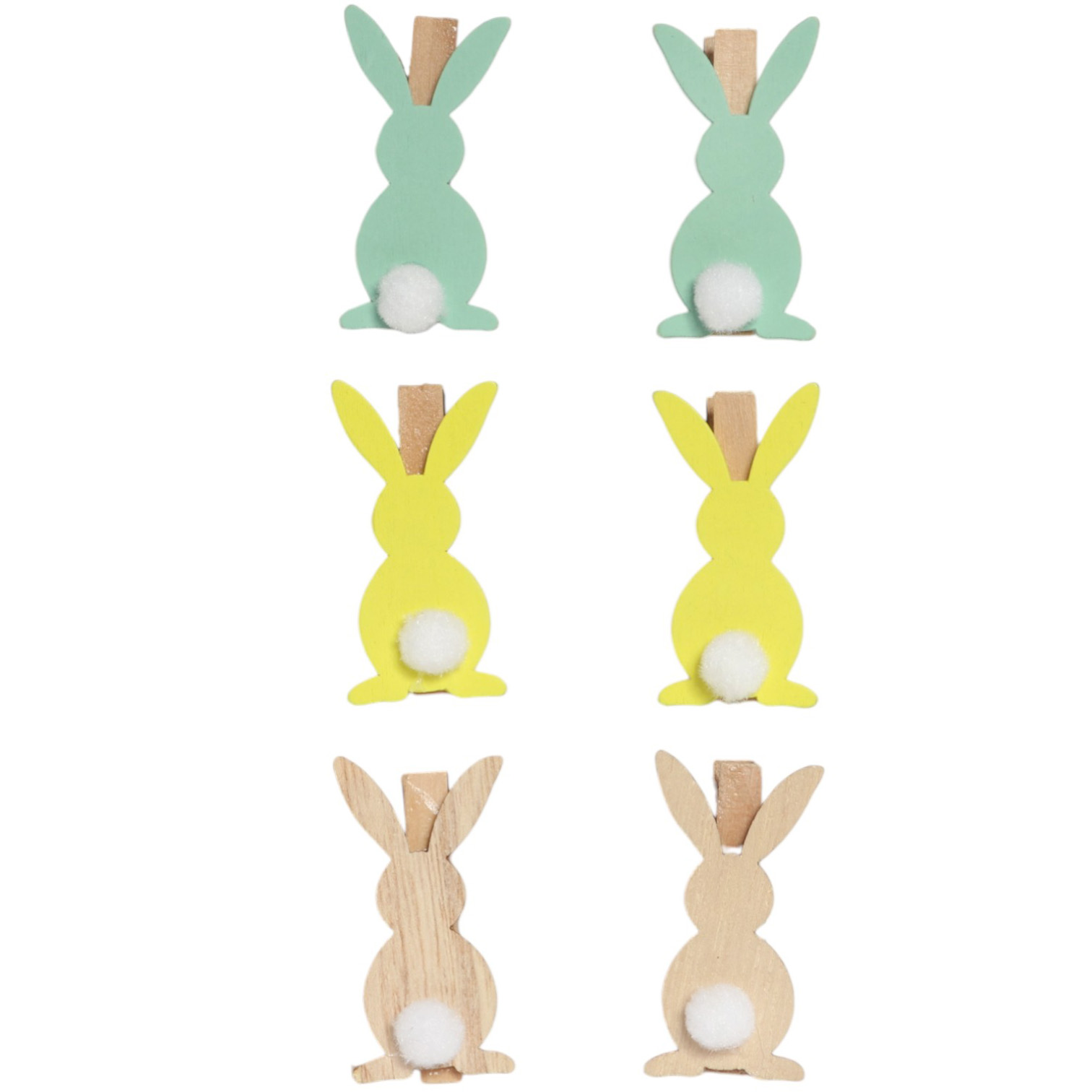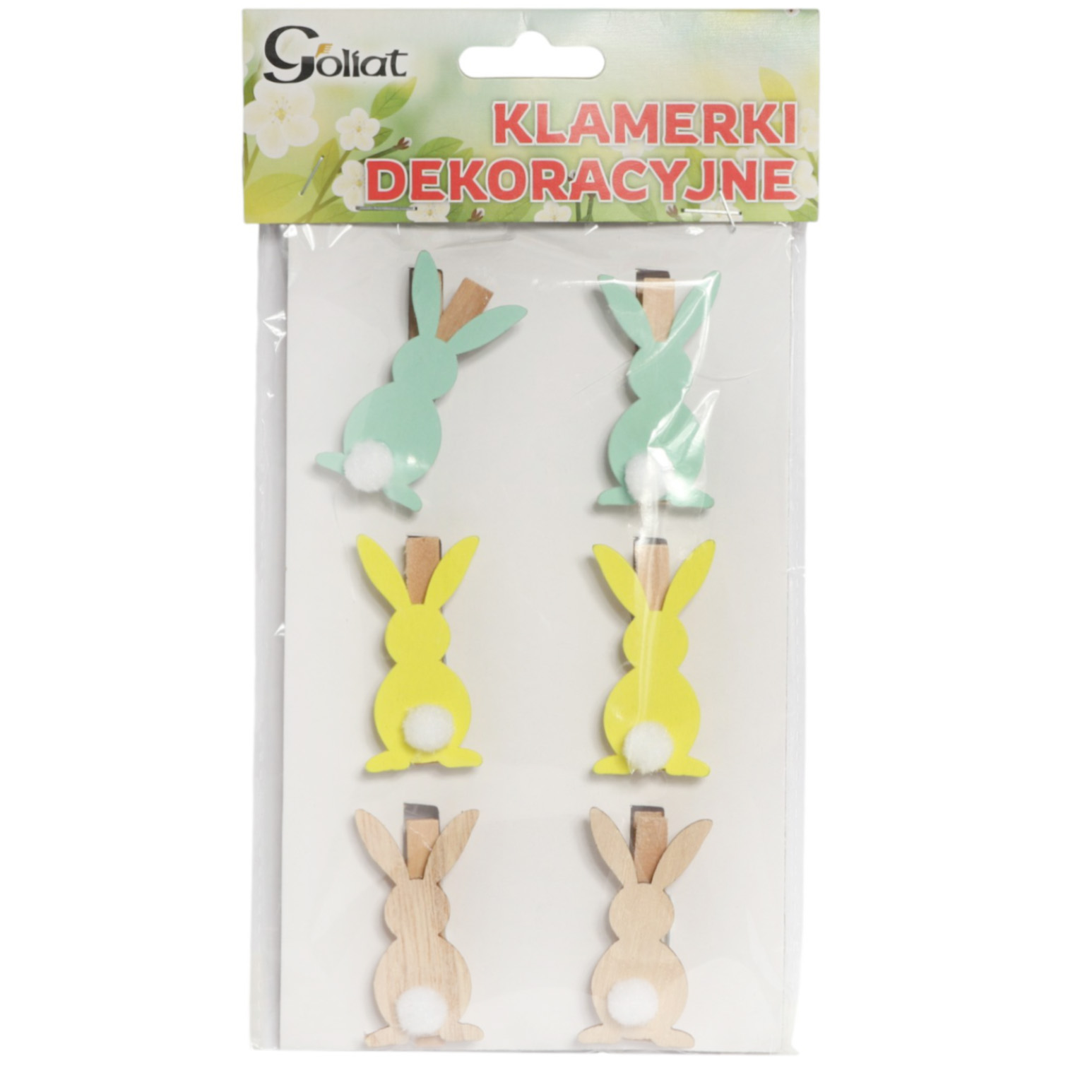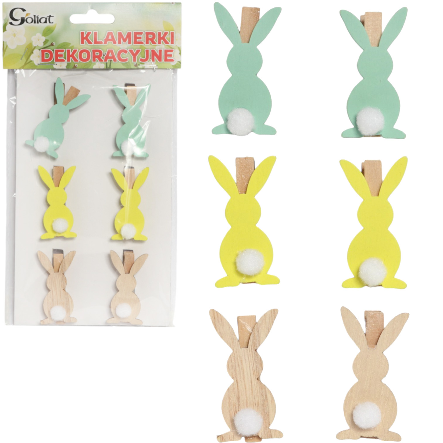 Klamerki drewniane spinacze mini zajączek z ogonkiem w 6 szt.