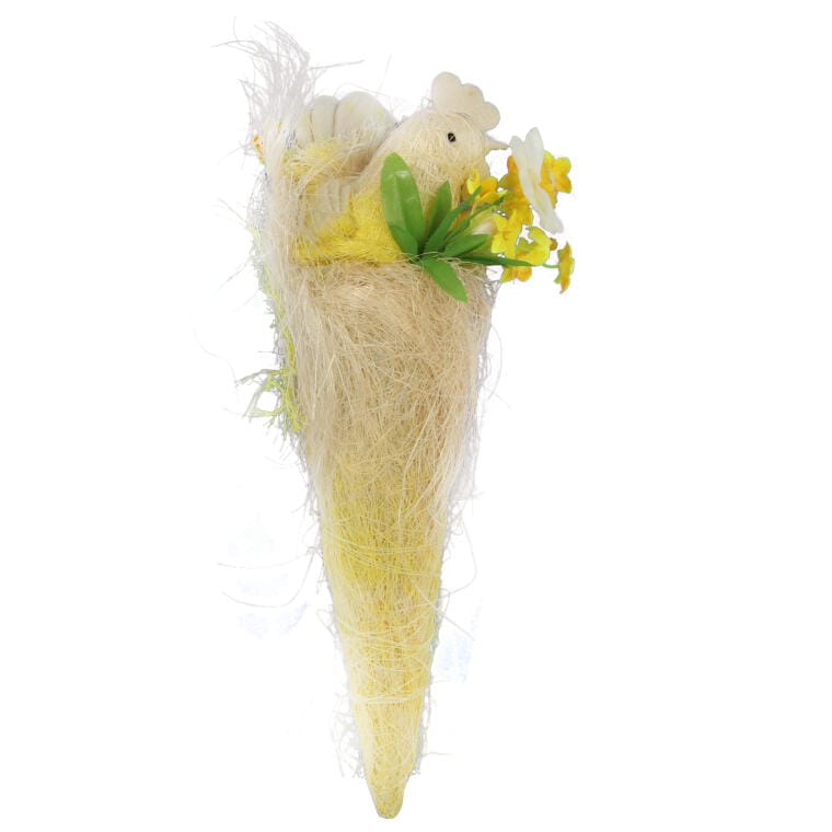 Dekoracja wielkanocna do powieszenia w postaci kogucika z filcowymi jajkami oraz kwiatkami umieszczonymi w kokonie z sizalu to wyjątkowy element ozdobny, który wprowadzi elegancki i świąteczny klimat do Twojego wnętrza. Ta efektowna dekoracja o wymiarach 34×15 cm w kolorze kremowo-żółtym doskonale wpisuje się w wiosenne aranżacje, przyciągając wzrok swoim oryginalnym designem. Kogucik w kokonie z sizalu to doskonały wybór, jeśli chcesz dodać niepowtarzalny akcent do swojego domu podczas świąt Wielkanocnych. Może być zawieszony w dowolnym miejscu, tworząc radosną atmosferę oraz wprowadzając naturalne elementy do wystroju. Ta dekoracja nie tylko przywołuje na myśl wiosenne odrodzenie, ale również symbolizuje radość i nową energię, charakterystyczną dla świątecznego czasu. Kogucik z filcowymi jajkami i kwiatkami to idealny dodatek do stroików, wianków czy innych wielkanocnych kompozycji, który doda wnętrzu uroku i świeżości. Dzięki swojemu unikalnemu stylowi i pastelowym odcieniom, ta dekoracja stanie się centralnym punktem Twojej wiosennej aranżacji, zachwycając zarówno domowników, jak i gości.