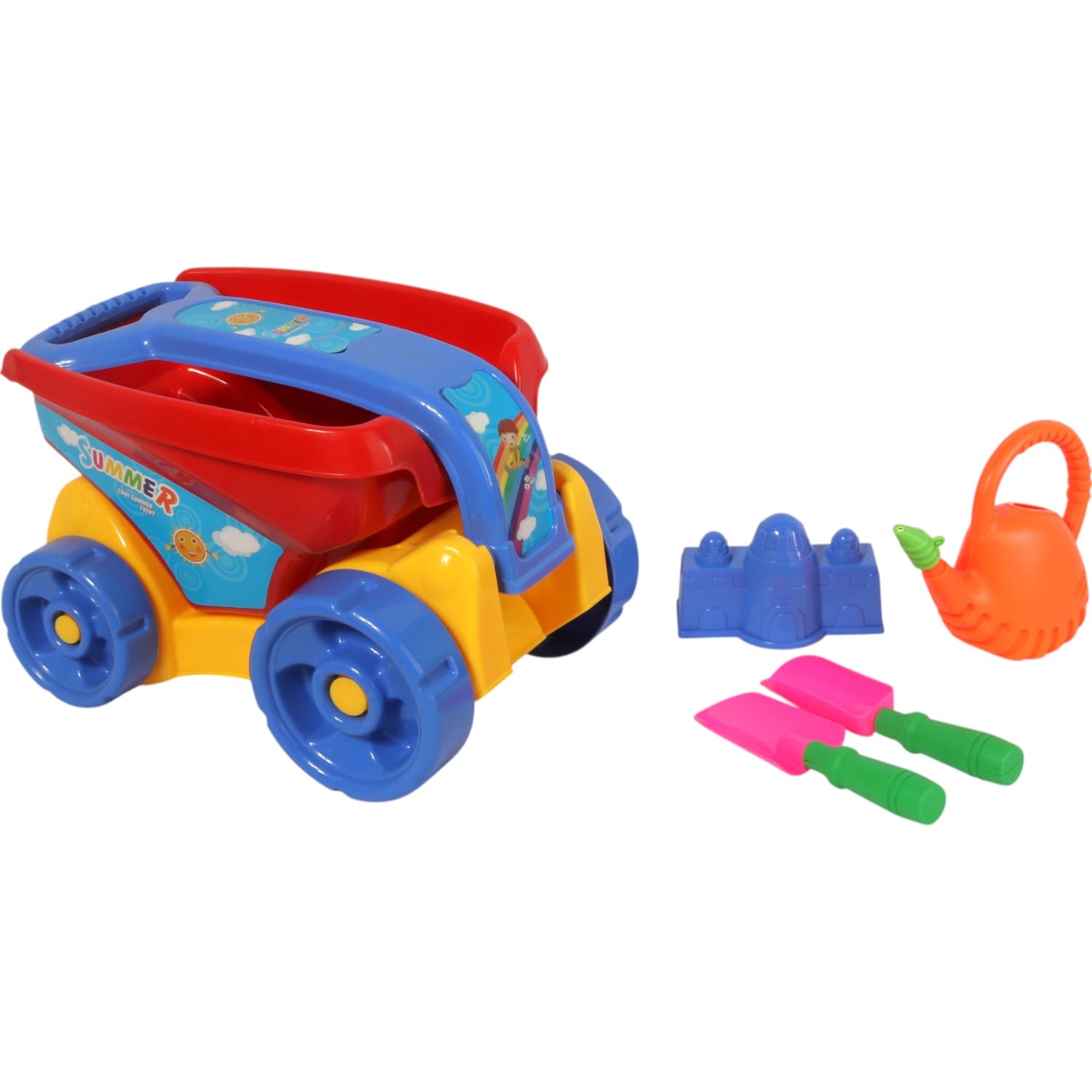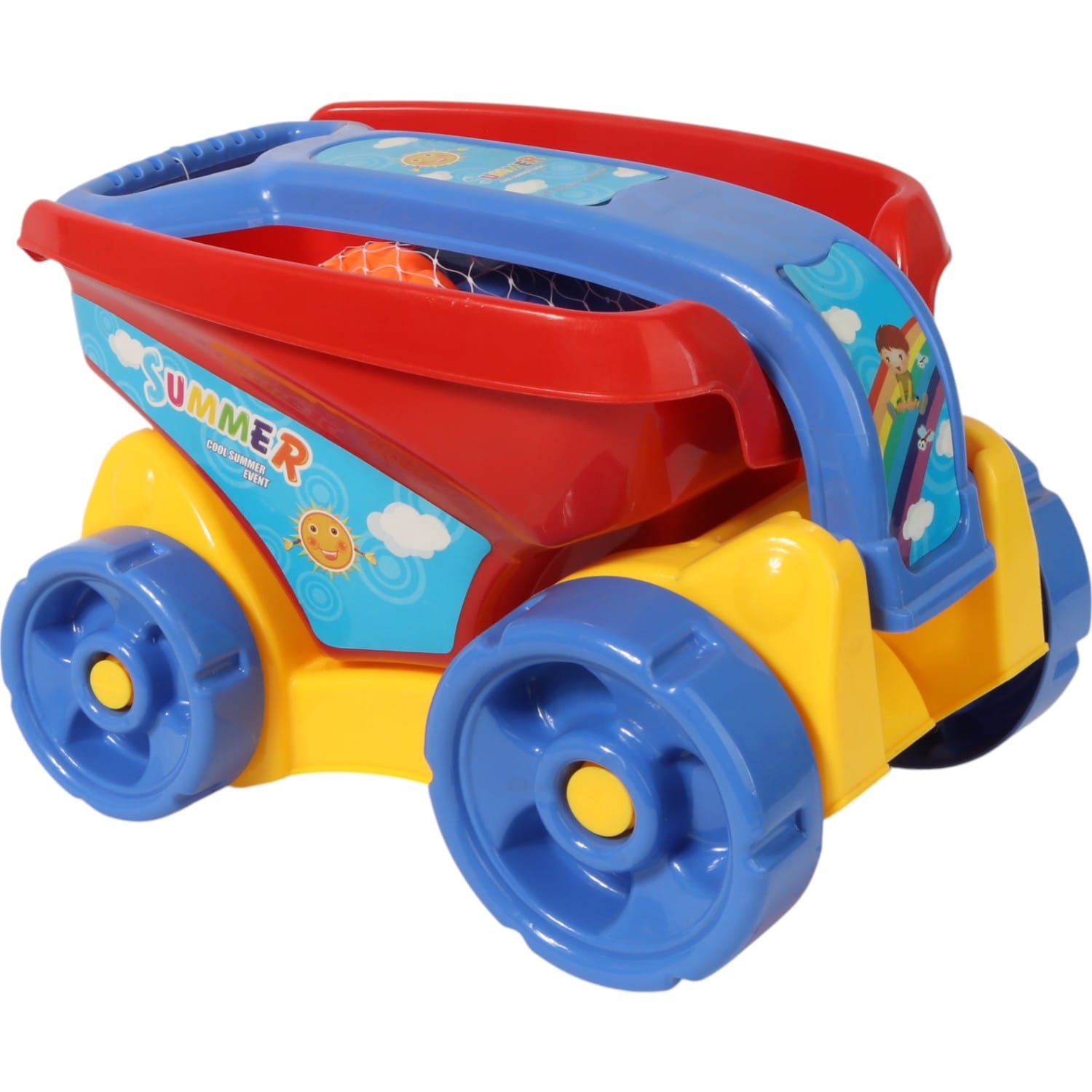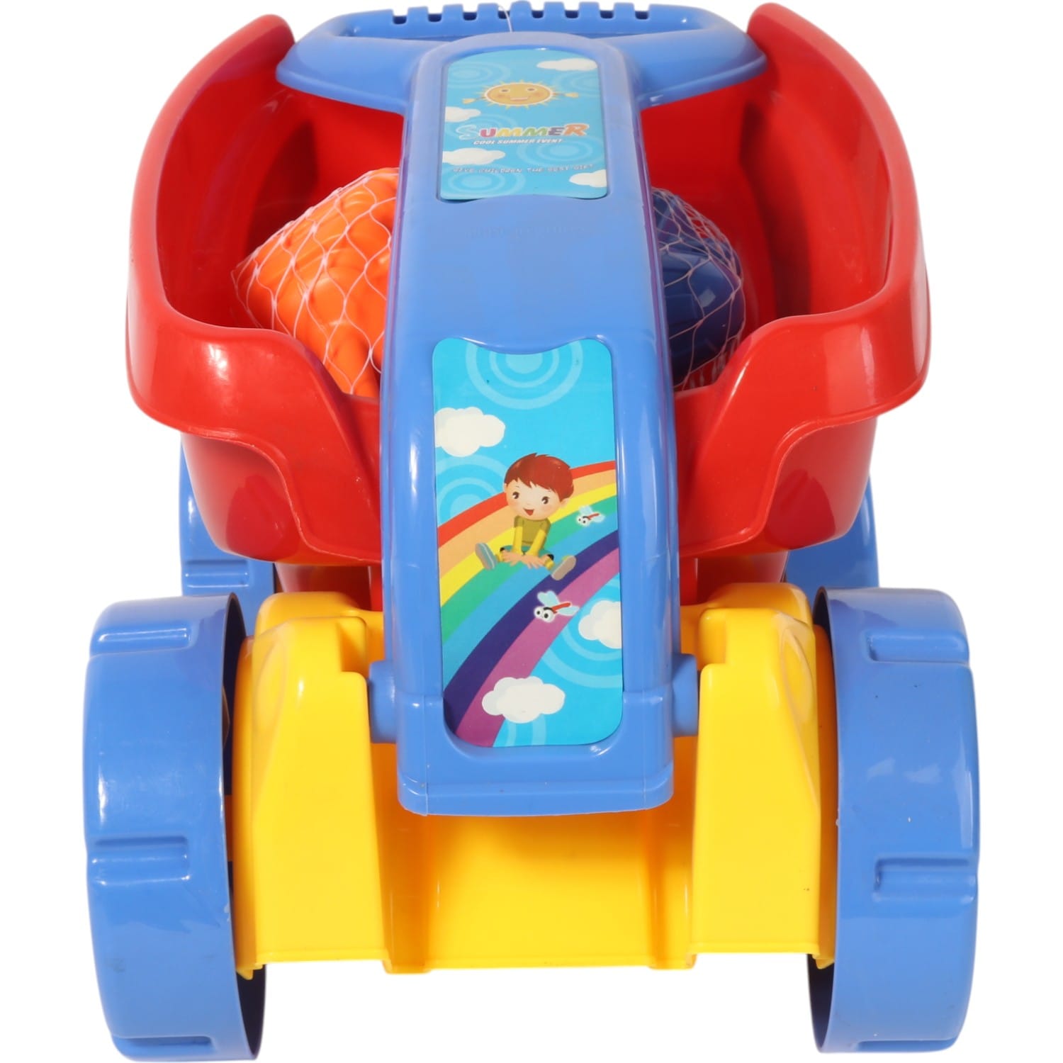Zabawki wykonane są z trwałego, bezpiecznego plastiku w intensywnych, przyciągających wzrok kolorach. Wózek jest lekki, a jednocześnie solidny – dziecko może z łatwością przemieszczać go samodzielnie, przewożąc ulubione zabawki lub piasek.