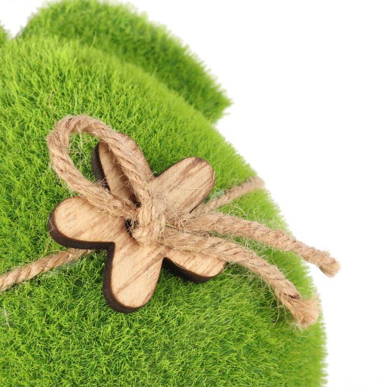 Zając flokowany z drewnianym kwiatkiem 18 cm zielony