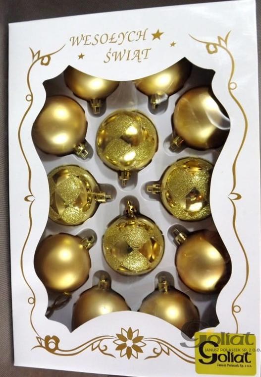 Komplet 12 bombek plastikowych złotych w kratę
