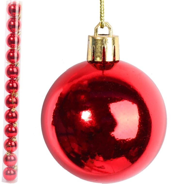Komplet 12 Czerwonych Plastikowych Bombek Bożonarodzeniowych 5 cm
