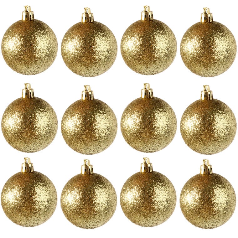 Komplet 12 Złotych Brokatowych Bombek Choinkowych, 6 cm