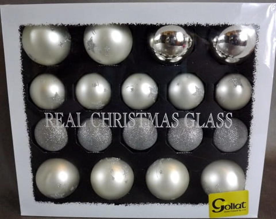 Komplet 18 Eleganckich Srebrnych Bombek Świątecznych – Mat, Połysk, Brokat.