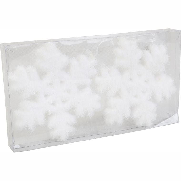 Komplet 2 Białych Opalizujących Śnieżynek Styropianowych 11cm w Boxie PVC