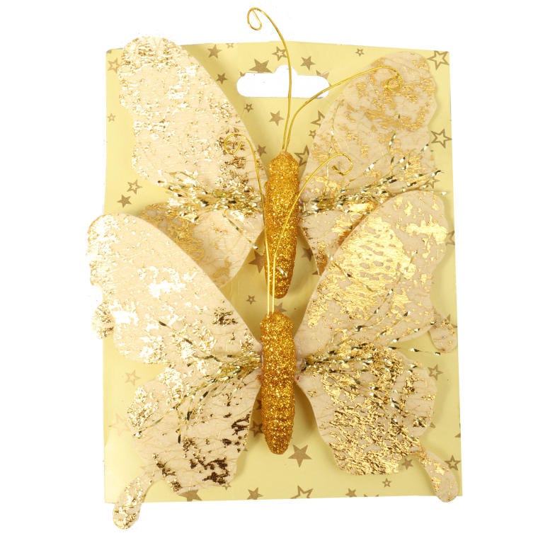Komplet 2 motyli na klamerkach w kolorze złotym