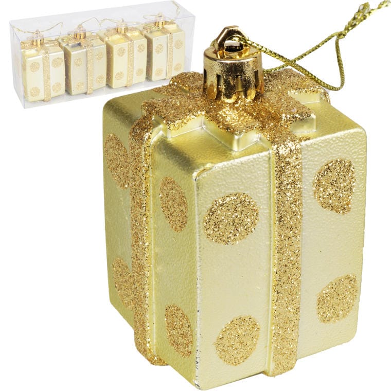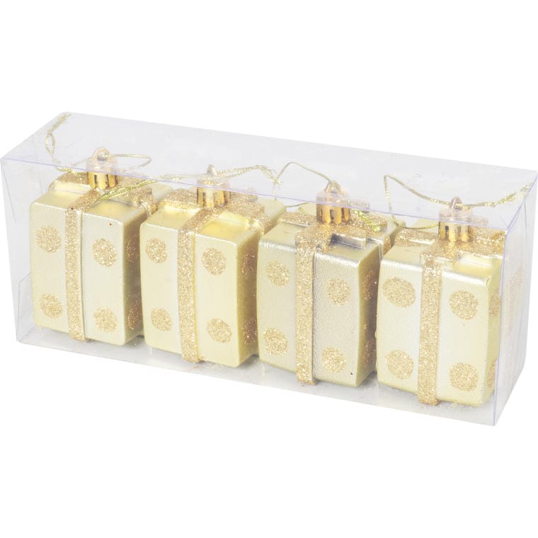 Komplet 4 bombek plastikowych w kształcie prezentów