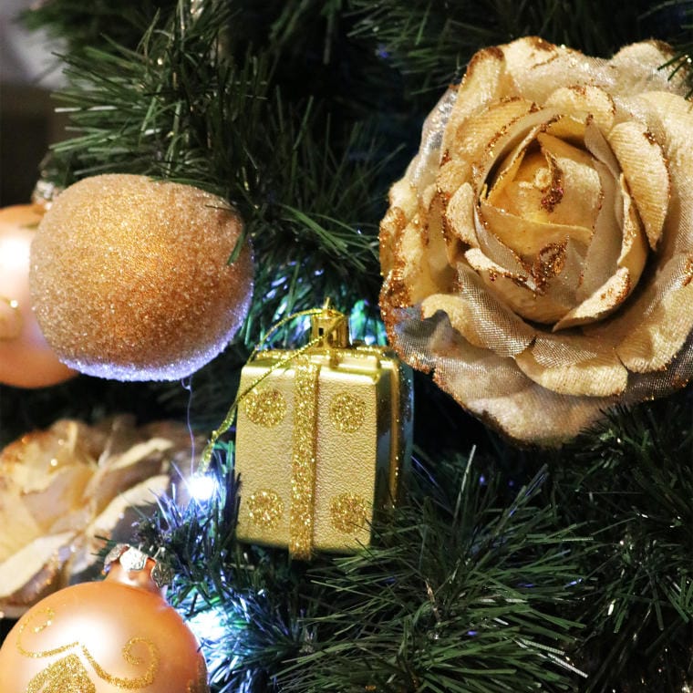 Komplet czterech plastikowych bombek w kształcie prezentów zdobionych brokatem w kolorze złotym to efektowna i stylowa ozdoba, która doda blasku każdej świątecznej aranżacji. Każda bombka ma wielkość 6 cm, co czyni je idealnymi do zawieszenia na choince, girlandach czy w okolicach kominka. Złoty kolor, symbolizujący luksus i ciepło, doskonale komponuje się z klasycznymi świątecznymi barwami, a brokatowe wykończenie nadaje bombkom wyjątkowego połysku, który wspaniale odbija światło. Bombki wykonane z plastiku są lekkie i trwałe, co sprawia, że są bezpiecznym wyborem, zwłaszcza w domach z dziećmi czy zwierzętami. Idealne do tworzenia eleganckich, pełnych blasku świątecznych dekoracji, bombki te mogą także stanowić piękny prezent lub dodatek do świątecznych upominków.