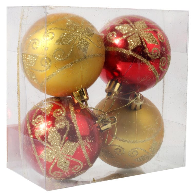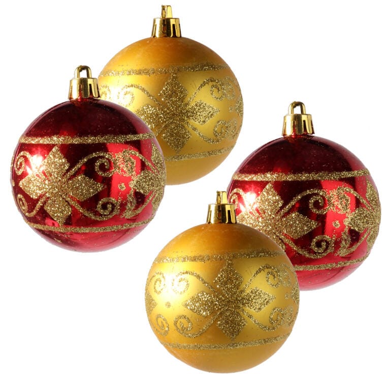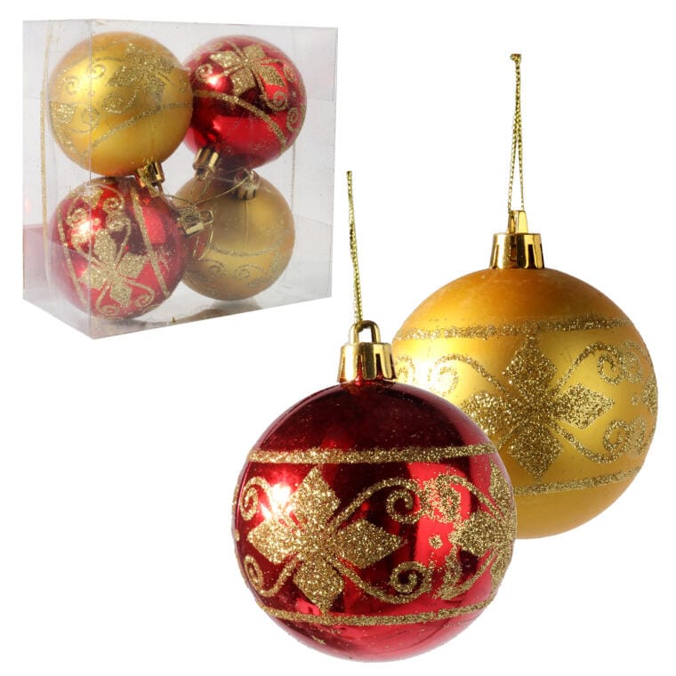 Komplet 4 Dekorowanych Bombek Świątecznych w Kolorach Złota i Czerwieni