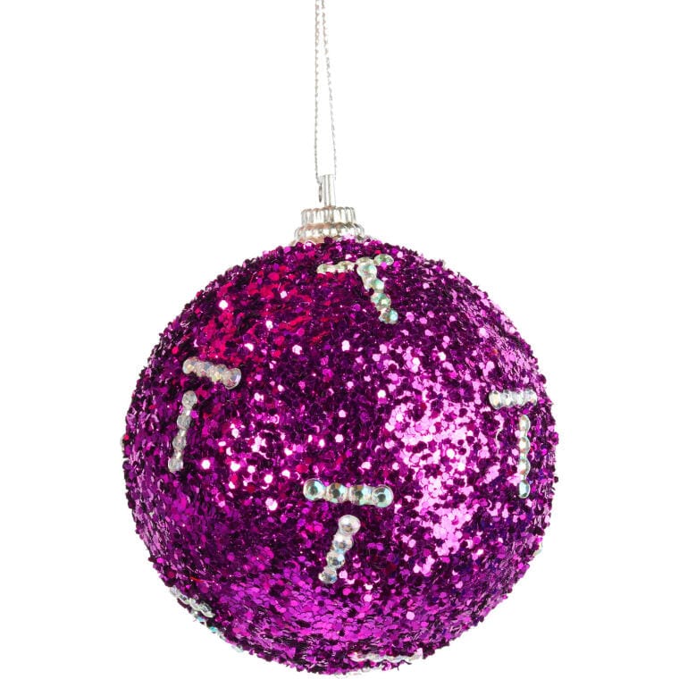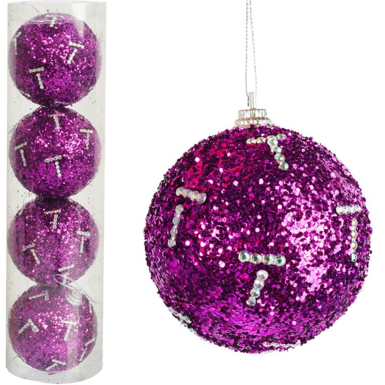 Komplet 4 Fioletowych Bombek Styropianowych z Cekinami 6 cm – Dekoracja Świąteczna