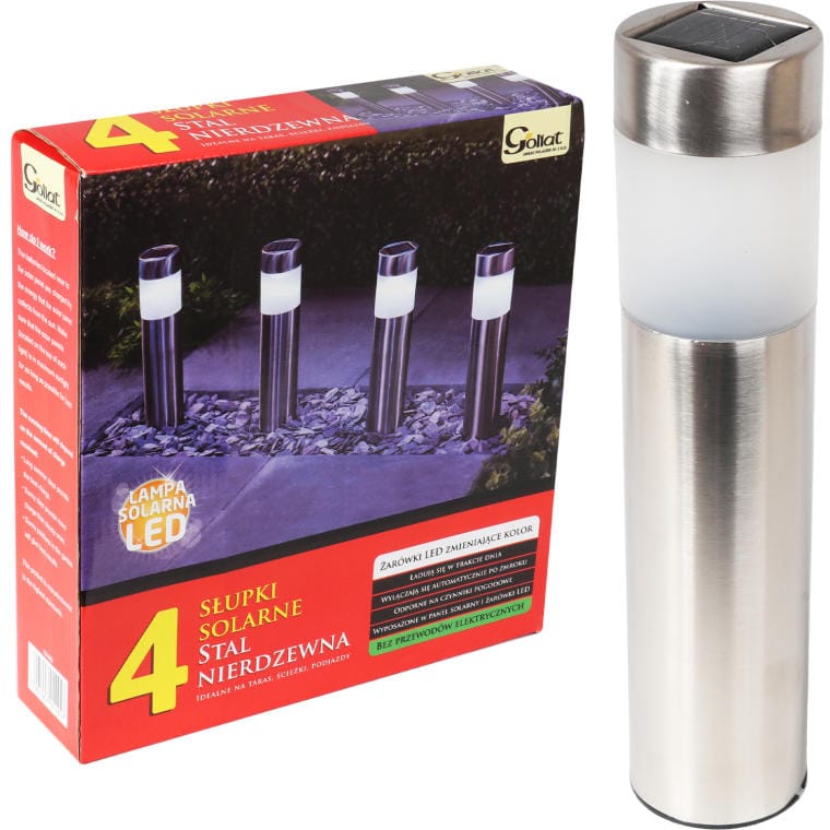 Komplet 4 Stalowych Lamp Solarnych z Automatycznym Włącznikiem i LED